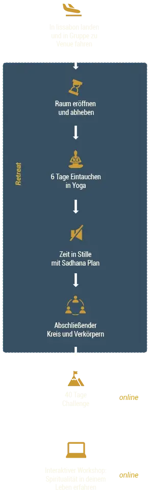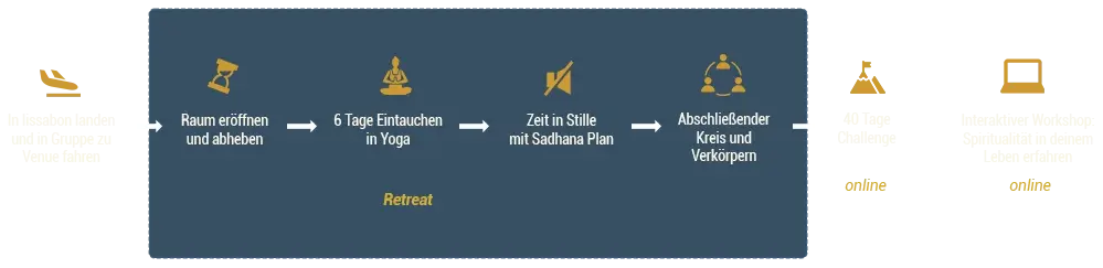 - Ankunft am Flughafen Lissabon bis Mittag 12:00 vom 27.07. (Montag) und gemeinsame Anreise zum Retreat